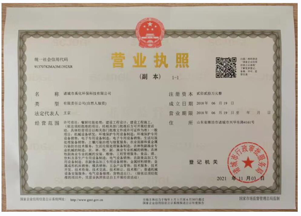 诸城市禹化环保科技有限公司从事畜禽无害化处理装备、污水处理设备、畜禽粪污处理装备无害化处理设备等环保设备等专业研发制造,历经几年的发展,现已成为集技术研发、工艺设计、产品制造、安装培训为一体的现代化机械制造工业企业。公司坐落于沿海开放城市并有“中国龙城舜帝故里”之称的诸城市,东邻海滨名城青岛,南毗新兴港口城市日照,交通便利,地理位置优越。公司坚持以诚信谋发展的理念,以“精湛的工艺技术、精良的设备品质、精细的售后服务”,赢得了广大用户的认可和赞誉,产品销售遍布全国各地,并远销东南亚、东亚、南美洲、中东等国际市场。